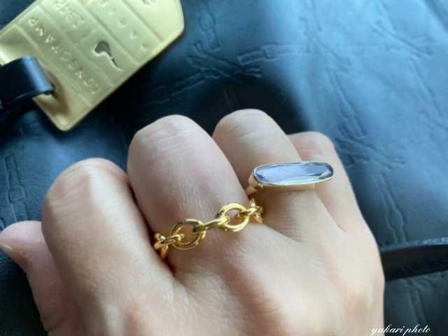 手元はOdulさんの石のリングとCHIEKO⁺さんのチェーンリングで。