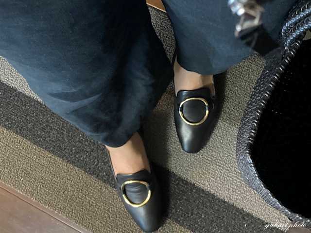 ゴールドのサークルがワンポイントになる靴は、すごく履きやすいです。