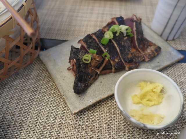 カツオのたたきは厚めに切った方が美味しいように思います。