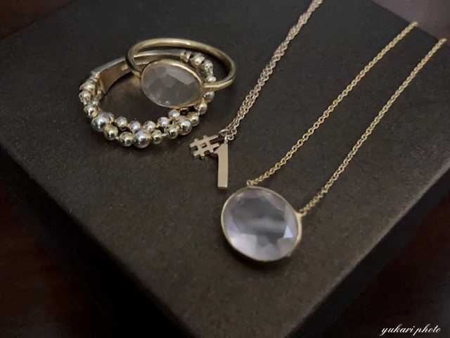 これに合わせるなら、ローズクォーツとゴールドがいいなあと。