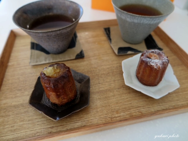 カヌレをのせたのは、前田麻美さんの豆皿です。