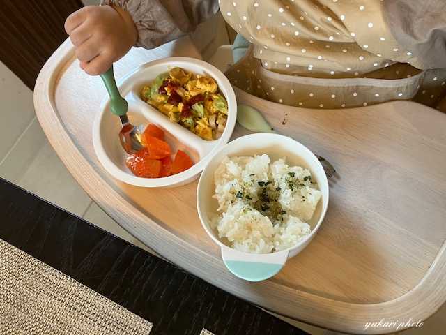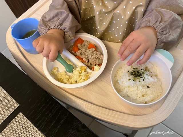 ほぼ大人の夕食と同じものを少し味付けを薄めにして出しました。