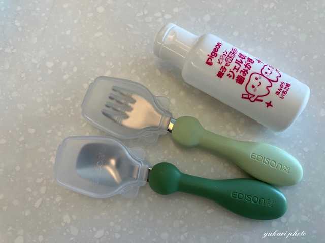ベビー用の歯磨き粉とスプーン&フォークです。
