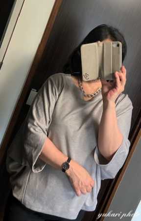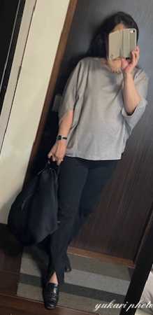 随分前に買ったグレーの変形ドルマントップスを着てみました。