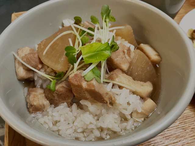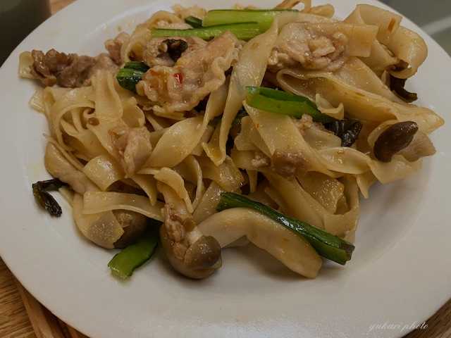 ごはんにかけるだけのバクテー、パッキーマオ(タイの辛口バジル炒め麺)、中華スープ(玉ねぎ、わかめ、玉子)