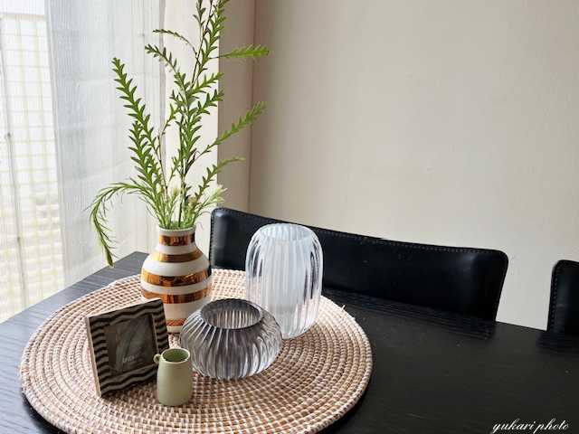 あまったグリーンはダイニングテーブルの上に飾りました。