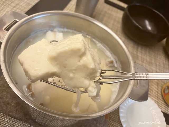 嬉野温泉名物の佐嘉平川屋の湯豆腐を食べようと準備し始めました。