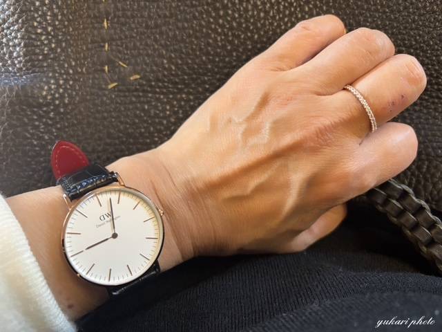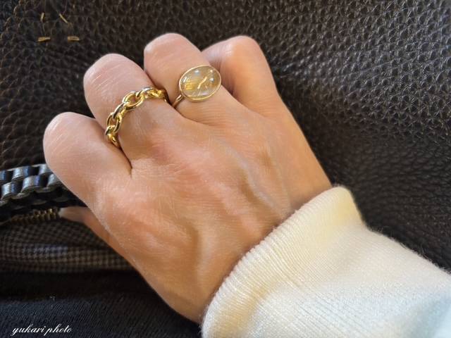 右手はゴールデンルチルとチェーン風リングをはめました。