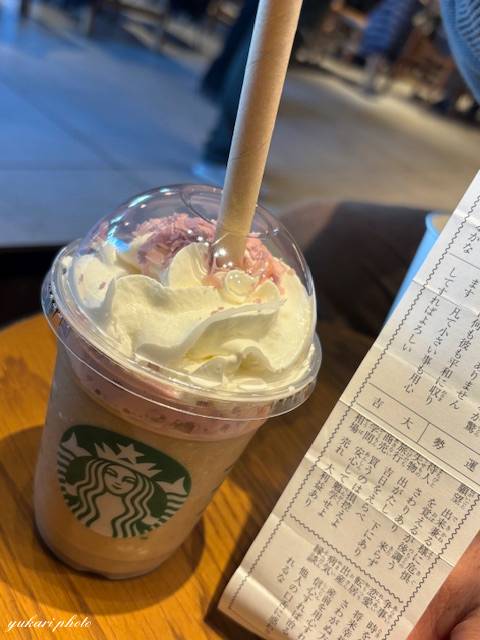 そこでおみくじで引いた大吉のおみくじの内容を読みながら、「ロイヤルアールグレイブーケフラペチーノ」を飲みました。
