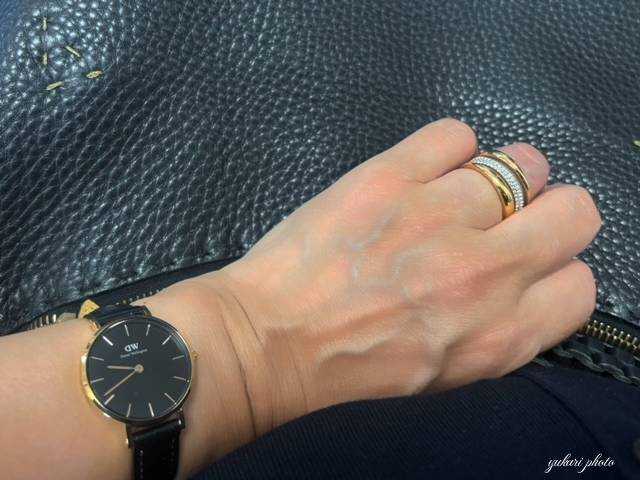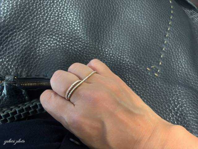 指には、スワロフスキーのリングと​ ödül ​さんののダブルフィンガーリングをはめて。