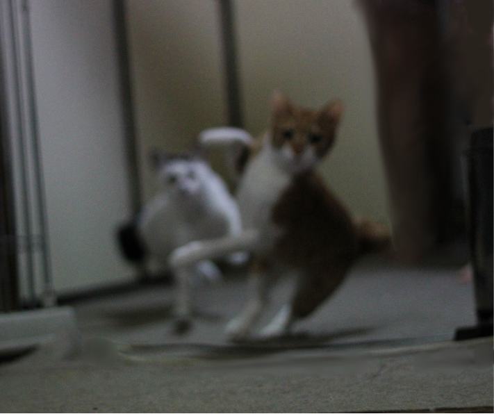 ”オモチャ!!””取ったぁ!””ちょ~~~っ!””あ、お兄ちゃんが取っちゃった””ど~ん””・・・”おとうタン撮影。おかあタンはオモチャ投げ係。連写です。ちょっと残念な感じ。使ったレンズは↓キヤノンEF50mmF1.8 II室内で動きのあるもの撮るにはイイ!F値が1.8で結構明るめに撮れる。ダブルズームキットのレンズだと暗い。焦点深度は浅い。カーペットの境目辺りだけピントが合う。もともと走る猫を撮るつもりだったので、ある意味まりんがちゃんと撮れてると言える(みかんのでんぐり返しはオマケって感じ)動いてるとこを撮るので、シャッタースピードをかなり短くして撮ってる。暗い画像があるのは電器のせいらしい。と言うわけでインバーターの電器に変えた。変えてからは暗い写真はなくなった♪まだまだ色々研究中☆色んな楽しい画像が撮れまくってるので順次UPしていく予定。ナゼかデジタル一眼を使うと、まりんが面白く撮れすぎる。乞御期待!↓カメラはこれ!【即納】キヤノン EOS Kiss X3 ダブルズームキットX2とどっちにしようか悩んだんだけど夜の室内での撮影が多いから、やっぱりX3にして良かった。ISO感度がX2とはケタ違い。↓ポチッとしてくださると励みになります☆彡