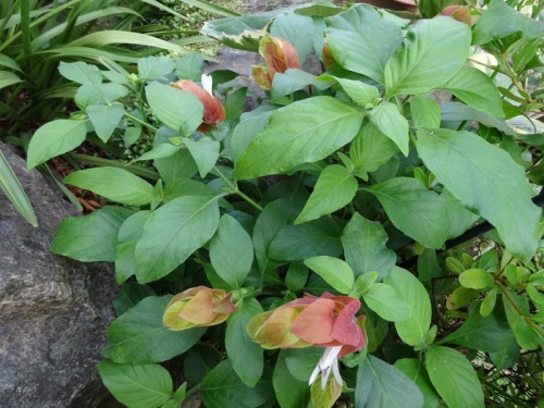 午後の気温は31度・・・ 今日も湿度が低いせいか家の中は涼しいです。 陽射しが強くて紫陽花などはぐったりとしてしまいました。 水撒きにも外へ出たくありませんね(笑) 庭の花も少なくなって、何かないかと探していますけど・・ いつも同じような花で、ごめんなさい。 鉢植えで育てていたコエビソウの種が零れてツツジの根本へ・・ 此処を定位置として4年ほど・・今年も芽を伸ばし咲き出した。 薔薇のレンゲローズです、この子弱いですね(笑) なかなか元気が出ません。 ヘゴニア・・冬越しをしたものです ベゴニア(銅葉)、 寒さに弱くて融けてしまったもの。 緑葉の縁に根を植えておいたら芽が出て育っています。 鉢植えの花菖蒲・・三色目が咲きましたけど、 暑さで花びらが縮れています。後ろ左の白はアッツ桜です こちらは二色目の ピンク色です