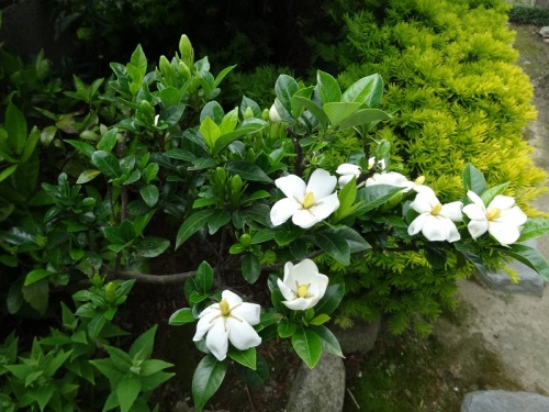 午後の気温は30度・・・ 大雨の降っている地域もあるようですけど、 此方は今日も晴れて、暑いけど爽やかな風もあります。 庭隅で今年も榊の白い花が咲いていました。 気を付けているのですが、枝の裏側に咲いて目立たないのです 十数年も花が咲くことに気付かなかったのですから・・(笑) 花の終った後は緑色の実が出来ますけれど・・・、 その先は青い、または黒い実になるかどうか?は確認していません。 榊の花です・・・ 写すタイミングが遅くて、色褪せた花も・・・ 庭植えになっている紫陽花です。古い木ですけど毎年よく咲きます ギャラリーダリア・ビンセント。昨年は秋も遅くまで沢山の花が 咲いたのですが、球根が育たなかった。 諦めていたら小さな芽が出て、一応復活!今年の花は無理かも? 西側花畑に植えている、花菖蒲・・鉢植えと同じ色でした。 同じ花畑の桃葉キキョウ、花ガラを摘んでおいたら また咲き出していますよ。