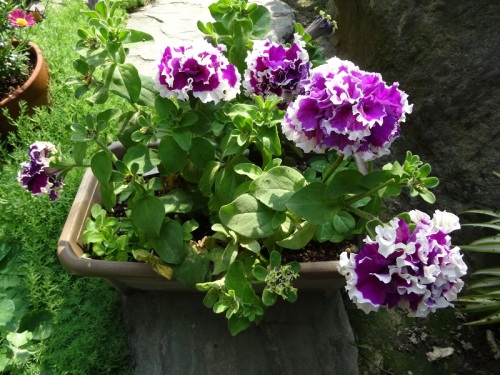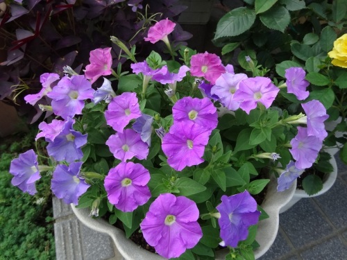 老いて早起きになりました(笑) 朝 四時頃には目覚めてラジオを聴いていますが 五時になるのを待って起き出します。 今は庭仕事も草取りぐらい、後は花ガラ摘み・・・ 朝の冷気が心地よいですよ。五時の庭は21度ありました。 午後の気温は31度、これから未だ上ると思います。 小花のペチュニア・・昨年購入のペチュニアの小さな花が 可愛かったので種を採って鉢に零して置きました。 種からの苗も少し花色の変化があって面白いです こちらも昨年の種から・・全然出所不明の花色も咲いてます 色が濃くなったり斑入りが消えただけかも知れません。 これは一昨年購入の大花の種類・・ カラーの鉢から発芽して咲きました。 マルコポーロ・・朝六時ごろ 開き始めた花を載せましたが 夕方には、大きく開花しました。好い匂いが漂います。 28日(土)中部空港セントレアへ・・電車の無料券があったので友人を 誘って遊びに行ってきました。何処へ出掛けても暑いですから・・ 無料券最大利用圏の空港まで~! 搭乗予定もないのにね、 偶然でしたが「山本譲二inセントレア」が開演中で暫く立ち見(笑) エビフライで有名な、まるは食堂で一時間ほどの待ち時間に 耐えて、やっと昼食にありつきました。