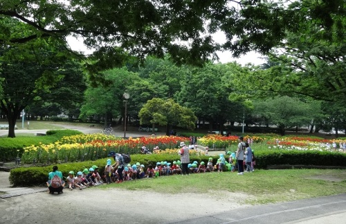午後4時の庭の気温は28度・・・嘘みたい! もっともっと暑く感じます。 今日は友人たちと名古屋市の千種公園へ、百合の花を見に行ってきました。 花の盛りは、やや過ぎていましたが、未だ綺麗な花を楽しめました。 雨が降るかと思ったけれど晴れて良かった! 暑かったけど・・・。 千種公園・・近くの幼稚園児のお散歩の時間と一緒に・・ 元気がよいねぇ~~! 花の名前は、カベリ。オリエンタルハイブリッド系。 種類に依って とても香りの好い百合がありますよ。 庭の花・・・鉢植えのカラーが咲きました 随分前から家にありますけど、花色は白だけが残っています。 プリムラ・オブコニカ・・・木の下へ移植して夏越し中。 昨年も4株ここで夏越しを試しましたが失敗! 九月に入る頃 暑さに耐え切れず枯れてしまいます。 庭植えの紫陽花・・ピンクの濃い品種です 菜園のミカン・・・苗木を植えて3年目。 初めて実を付けました。(^-^)/ 甘いかな?(*◜◒◝*)