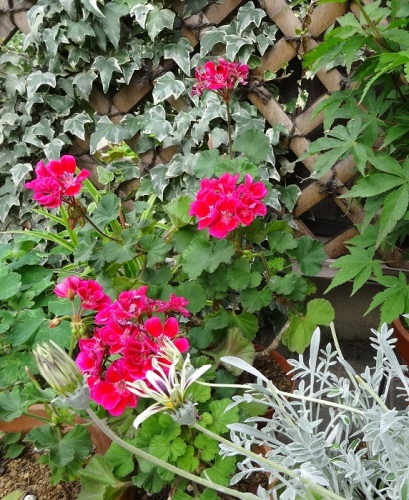 午後の気温は31度・・・ 湿度が50%弱ですので家の中は涼しく感じます。 庭仕事が少なくなってきました。(笑) 夏場は鉢植えを出来るだけ少なくするように心掛けています 庭植えの薔薇 シャルダンに今年は今も蕾が沢山できて・・ 小さいうちに摘み取っていますけど、こんなに元気が良いのは 初めてのこと。何が良かったのかな? 肥料? 薔薇の育て方は全く分らなくていつも適当にです。 薔薇 シャルダン・ドゥフランス。20個位咲いてる♪ 桃葉キキョウ・・二番花、あまりにも鮮やかで綺麗だったので・・ 時々登場ですみませんo(*^▽^*)o~♪ 今年はミニヒマワリの種を蒔いてみました。 あちこちに五本植えてありますけど蕾らしきものも見えます。 ペチュニア・・昨年の種から、咲いた花。 挿し芽をしたまま定植しないうちに咲いている・・ ペラルゴニュームと ゼラニューム・ストロングです。 忘れ物・・今年も柏葉紫陽花が咲いていたのですよ、花は3個だけ 手入れしてないこと、花はよく知っていますね。