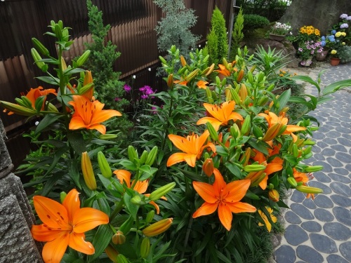 午後の気温は30度あります 三時を過ぎて少し風が出てきました。 庭の花も新しく咲き出すものがありません 春の種蒔きが遅すぎたようです。 春には沢山の花が並んでいる場所・・今はスッキリと何も無い(笑) ガザニア・ティラミスも、また来年ですね。 アイビーゼラニュームの(クロンボちゃん) 日焼けで増々黒くなって♫ ・・よく咲きましたが暫しお休みかな。 アプチロン・・伸び過ぎていますので、挿し木も根付いたようで 来年は交代です。一年目に開花しますよ。 リヤトリス・・蕾が出来て来ましたよ。 大きくなる花は小さな花畑には合わないのですが・・ 昨日の続き、公園の百合です・・百合カペリと木陰で憩う人。 名前は、イエローダイヤモンド。鮮やかな黄色でした ネロ・・アジアン系の百合だそうです 真っ白い百合、名前は不明、