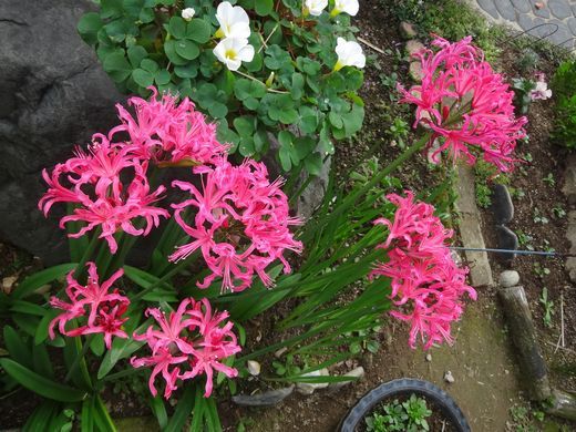 朝 6時頃には雨が降っていたけれどその後は晴れて西風の強い日です寒くて庭仕事など遣っておれません。昨日は総合病院の予約日でバスを乗り継いで行って来ました夫の運転免許の返納に備えて自分で行く事にしています。交通量の激しい道路ですから・・・。今日は午前中 親戚の人と喫茶店でした。 ネリネの花 地植えです 此方は鉢植えのネリネ。 他に地植えが二ヶ所 全部で30球を植えています 種蒔きしたマラコイデスは移植の時に暑さで枯れたのが多く 白色は全然残らなかったので、 産直で白を一株だけ買って来年の種取に備えた。 上 正面が白色です 寄せ植えに入れたナデシコの残りを花壇植えに・・ 左上にはカンパニュラを植えました。 此処は金盞花を・・・ 自分で種蒔きしたものは小さいので購入。 こうして花壇の隙間に何でも植込んで 計画性は無し・・・ 咲いたときを想像して植えるなんて、とても出来ないです。 ガーデニングじゃなくて私のは庭仕事ですから・・(^^)/ font>