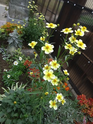 今日の気温は4度~13度・・・風もなくて暖かい午後になりました。朝の庭仕事は寒くてやっておれませんね~午後の暖かい内にいろいろ済ませました。ギャラリーダリアの花は終ったけど葉は緑色で活き活き・・迷ったけれど切り取り、一週間ほどしたら球根を掘りだす積り、後ろの花苗に陽が当たらないからね。 庭の羽毛ケイトウは未だ綺麗で残しています 今月6日購入のナデシコ しっかり花数も増えて来ました オキザリスパーシーカラーも蕾が沢山あります 種蒔きしても植場のないペチュニアたち 早いのはツボミが出来ていますよ。 丹頂草の株分けをして植え替え・・ 鉢から抜けないので株を分けました。、どうなるかな? 芽が出るまで何もないのでビオラの苗を一緒に・・ 私のカロライナジャスミンとお隣さんの甘夏柑。