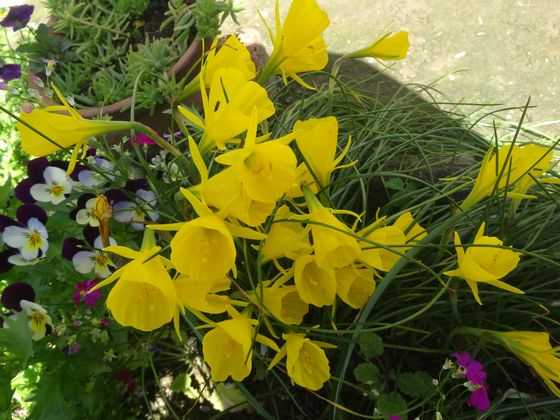 風もなくて暖かい日になりました。 最近はスマホの写真がブログに出せなくなって 一寸 教えて頂きに行ってきました。 上手く出来るかどうか、未だ試していませんけど・・ やはり以前とはグーグルのシステムが変わったようです 私は自分がいよいよ呆けたかと・・ガックリしていました 水仙のゴールデンベル、 全部 咲きそろったようです 日陰になって開花が少し遅かった。 ペチュニアも昨年の毀れ種育ちのものばかり・・・ 花色は変わっていますけど元はサフィニアだと思います この白色も親は何年前のものやら・・ 此れは3年ほど前に購入の贅沢ペチュニアの子 今年も毀れ種から二株咲いて呉れました 去年 可愛い花だからと無名のポット苗を購入 その毀れ種から咲いたもの、 買った年も丸くこんもりと咲かなかった。 今年もこんな感じの咲き方ですね 真っ赤と、ビロードのような漆黒が咲いたと 喜んで前に乗せましたけど・・・ 定植したみたけれど、丸くこんもりとは無理な 伸び具合ですね。 赤色を抜きたいけど根っこが絡まっていて 無理なのです。