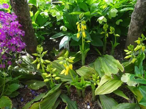 今日の予報気温は19度~7度・・・ 風がないので暖かくて良い日です 日焼け注意も忘れて午前中は庭仕事・・ 何をしたのか?大して捗って無いのですよ。 先ほどから町内の顔見知りの方が「お花を見せて」と・・ どうぞ・どうぞ~♪ 欲しい花があったら言って下さいね。 種を零して置けば咲く花ばかりの家の庭です。 切り花用金魚草です 背丈が伸びますけど脇芽も沢山出ています 日本さくら草が咲きました 今年は失敗~! 冬の暖かさで早く発芽 其の後マイナス気温が続き枯れてしまった。 春が来て再発芽は一芽だけでした。 都忘れの花 例年は年末ごろに植え替えて春を待つのですが 今年は3月頃に植え替え・・・ 短くて花もやっと咲いた・という感じです ダイアンサスの発芽、 これは鉢植えにしたものです 大鉢に苗のまま放任のものがありますけど 植え替えが出来て無い! リナリアの花 今年は黄色が多く咲いています 庭のハナミズキが開花です 木が大き過ぎてカメラが届かない! 下枝の花を一枚・・ 庭植えのブルーベリーです 沢山の花が咲いてる♪ 今年もジャム作りが楽しみです