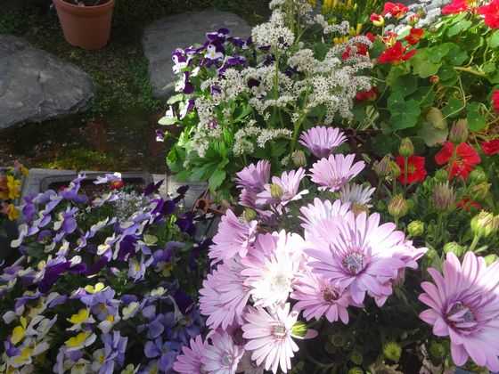 朝から雨が降り続いています 時間ギリギリまで迷いましたけどクラブを欠席! 雨の日は行きだけ車で夫が送ってくれましたけど 運転を止めてそれも駄目! 買い物にも行けない、不便な事です。 今日の雨、昨日花壇へ定植したダイアンサスには 丁度よい雨になりました。活き活きしています(^^)/ 1日~2日前の写真から・・・ 家の庭の一番寒い場所で マラコイデスも最終まで綺麗です アイリスや水仙の咲く西花畑で チロリアンランプは年中 咲いているみたい。 多肉植物の花、秋麗と教えていただきました。 毀れ種育ちのペチュニアたち 不思議な色が生まれますね ずーっと以前のサフィニアのような気がします どうして今頃咲いたのか? 種が残っている筈もないから 白いサフィニアが先祖返りした?? でも、楽しいですね~♪ オステオスペルマムの花壇植え 大きく育って長い間 楽しませてくれます