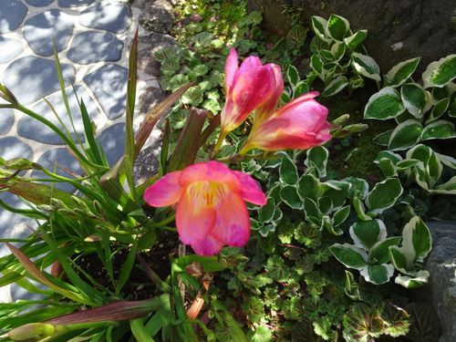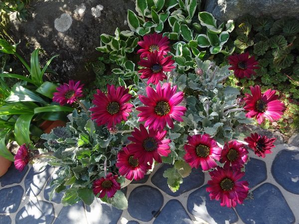 ピンクと紫色は昨年春に購入、鉢植えにしています