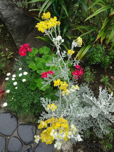 花壇植えのシロタエギクにも黄色い花が咲いた♪