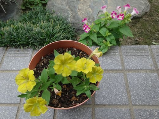 今年は小鉢植えに・・鉢底から根が伸びて動かせない!