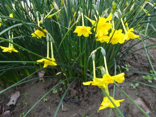 野菜畑に植えている白い水仙