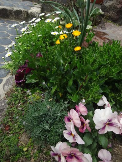 春の花が咲いて賑やかな庭