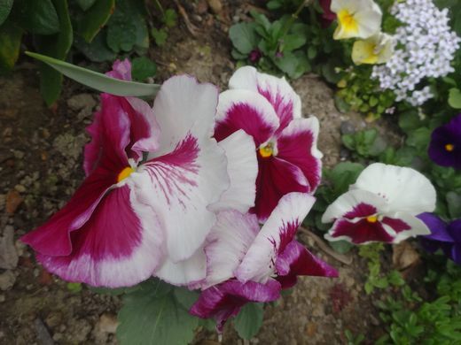 この手前のピンク色パンジーと奥の赤色パンジーは買ったもの。