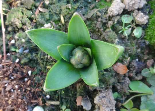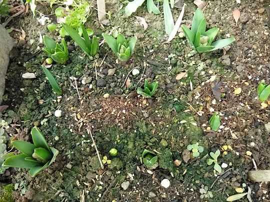 花壇植えのヒヤシンスに蕾が見えます