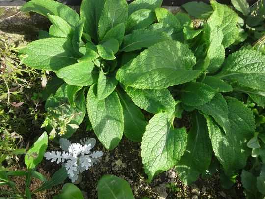 右横の丸い葉はジギタリスの種蒔きしたもの。