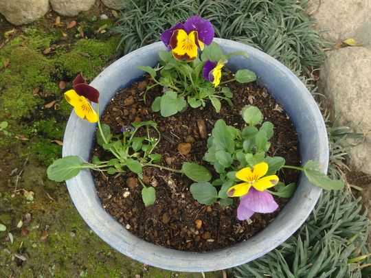 ユリの球根が植えてある鉢にもビオラの発芽苗、