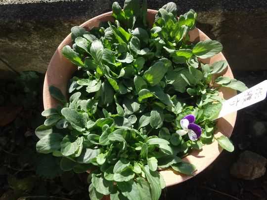 オキザリスと競争で沢山発芽したビオラ、