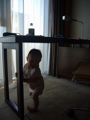チビちゃん、初めてのホテルの部屋に大はしゃぎ。