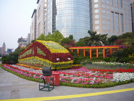 チベットへの列車開通を記念した花壇