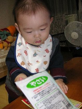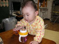 そういえば、6ヶ月検診の日。検診後に栄養士さんとミルク・離乳食の相談なんかを受け付けてるみたいでお話してみたが、「隆ちゃんがミルクを嫌がる」とゆきこ1世が相談。すると、哺乳瓶が嫌なのか、ミルクの味が嫌なのか、ミルク飲みすぎで体がストップしているか、・・・・・・等、お答えが帰ってきた。その中でも、「哺乳瓶が嫌なのだと感じたらコップであげてみてください!」と言っていたなぁ~ (; ̄^ ̄)ん~とミルクって哺乳瓶で飲ませるものだと思い込んでいたけど、コップでもありなんだな。。「歯が生えたら夜中寝る前のミルクで哺乳瓶を使うと、歯の裏側の虫歯になりやすい」となにかの雑誌で読んだ記憶あり。。。(o´_`o)う~んちょっと大変そうだけどそろそろコップの練習し始めようかな?今日はそんなことを思い出して気になりました。。まだ隆ちゃんには歯が生えてきてないです。なので、まだ虫歯はないのでご心配なく・・・今朝。パパが出勤前につめを切ってくれている間、隆ちゃんはTVを見てました。