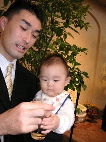 本日16日。お足元の悪い中、お日柄も・・・なんてことも吹っ飛ぶくらいの温かい雰囲気の幸せいっぱいおすそ分けしてもらった感の強い結婚式。いいなぁ~私ももう一度式だけ挙げたいな(;´∀`)あ・・・ちょっと・・・体重が増えたような・・気にしない気にしない★彼らは隆ちゃんが生まれたときに病院までお祝いに来てくれた。その時初めてだんな様を拝見したのだけれど、とっても紳士的でやさしい感じのお似合いカップルという印象だった。式でも、やっぱりお似合いなカップルだなと再確認。末永くお幸せに。*****************************************************************そうそう隆ちゃんですが。もちろん参加。朝おきてから一睡もせずに離乳食・ミルク・お風呂なんかをこなして電車で結構長く揺られながらも式場へ。電車では最近隆ちゃんのはまっているサワサワ(なんでもサワサワ触っている事を呼んでます)をはじめ、知らないおば様の買い物袋に手をかけようとしたり、窓ガラスをバシバシたたいてみたり。。ま、いつもどおりなので、これはOK。会場では待合室にある観葉植物さわさわしたり、お皿やナイフ・フォークを触ろうとしたり、グラスを盗ろうとしたり、ママのネックレスを引っ張りまくったり。。。とにかくせわしなかったけど、ぐずぐずはしませんでした(≧∇≦)ъ ナイス! でも、限界がたまに来るみたいで、うるさい会場内でもママの上でぐっすり眠ったりしてました(-_-メ)ごめんね。。無理させたかな?(;´∀`)でも良い子で助かりました★ありがとうね。隆ちゃん。今日はぐっすり眠ってね♪