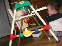 最近。気になる隆ちゃんの笑う瞬間。隆ちゃんを片手に持って洗濯物を洗濯機から取り出す時。隆ちゃん大笑い(; ̄^ ̄)ん~ なんで?横抱きにした時やたて抱きの時に隆ちゃんのびっこ。背中を反り返して白目向くくらい頭を下げて大笑いw なんで??網戸に軽く体や頭をあてると大喜びw なんで???赤ちゃんって、変なところに笑いのつぼがあるんですよね(○゚ε゚○)ママの常識なんて通用しないかも♪♪未知の生物?!なんちゃってw**************************************************一時期使いすぎて遊ばなくなったメリーさん。最近触りたいみたいで、一生懸命いすの間から手を伸ばして触ってましたwこの後は、出して遊ばせてあげましたよ('c_,'`)プッ