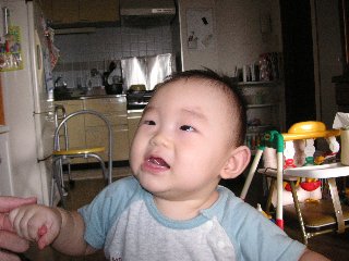 最近。ゆきこ1世が両方の人差し指を差し出すと両手を出して指をつかみ、つかまり立つ隆ちゃん。嬉しいみたいで笑ったり変な顔もします。 変な顔はこんな感じ。 ↓ ↓ゆきこ1世の指をつかむだけでなく、自分でもよく台やら、ソファーやら、ゆきこ1世の足なんかをつかんでつかまり立ちをして喜んでたり。『えへ!!』や『きゃはは!!』とおっきい声を出しては『見て見て』と主張するので見てあげると超ご機嫌♪しかし、、昨日はとうとう・・・・・・つかまり立ちして『う~ん。う~ん。』と汗かきながらうなっているんで、どうしたのかなと思っているとぷ~んと異臭が☆そうです。ウンチしちゃいました(-_-;)これでつかまり立ちも完璧ですね_(_^_)_あひゃひゃ☆