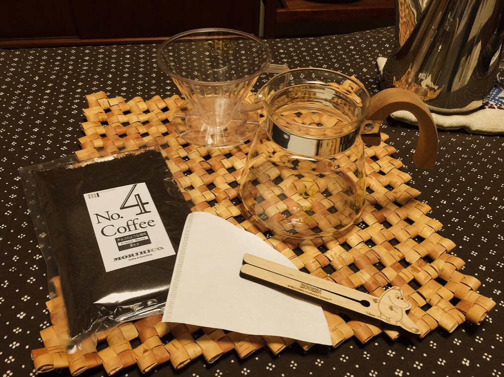 お湯を注いで、ポタポタと落ちてくるコーヒーを