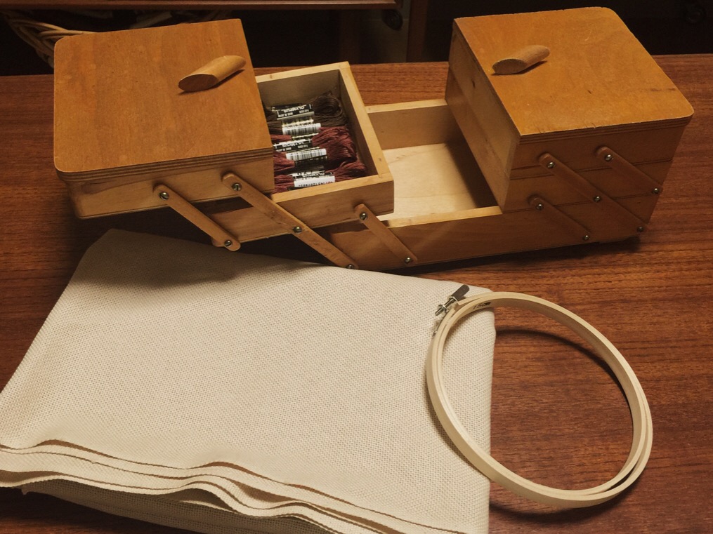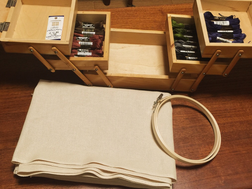 スカスカですが、ヴィンテージのソーイングボックスに収納♪