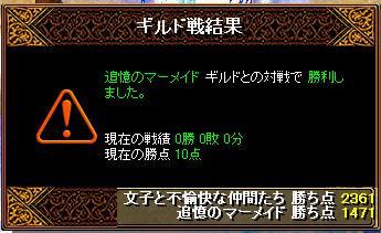 前回のネバーランド戦は、相手様との連絡の行き違いで中止となりました。もう少しお早めにご連絡いただけると幸いでしたが。どうやらしばらく休止の方向性のようです。ギルドが減るのは非常に残念なことですしぜひ一度お手合わせ願いたいギルド様でした。そんなわけで前回の明鏡戦よりしばらく組めておりません。ですがサブキャラがいるので200前後制限GVは連日やっておりますが…最近どこのギルドさんも勢いがありますね。サブでお相手いただいた中で印象的だったのは以前お手合わせいただいたブラックキャット様は「世界が終るまでは」の方がほとんどいらっしゃり、かなり強かったです…。秘密倶楽部さんも、人数多いうえにバランスが良くとても戦いづらかったです。明鏡止水さんは、なんでウチなんかで勝てたんだろう?ってぐらい強かったです…。結構ギルドの合併?というか主力メンバーがまとまって移籍したりしてるみたいですね。ぜひウチにも…ry200前後ギルドさんで勝ちぬくのはかなり厳しいなと感じました。書くことがないので個人的な意見をさらーっと書いてみました。当ギルドと直接やったわけでもないのに、名前をあげてしまいました。何か不適切な発言・表現があり、気分を害された場合は削除しますのでお気軽に言っていただけると幸いです。次回は明鏡止水さん・新世界さんに勝っているpure_soulさんです!文子メンバー力を合わせてがんばりましょう♪5日(日)pure_soul 22時台7日(火)追憶のマーメイド 22時40~ クロカンとなっております。各自ご確認お願いしますー