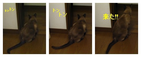 階段のある左前方に意識を集中しシッポを細かく降りながら待ちます・・。