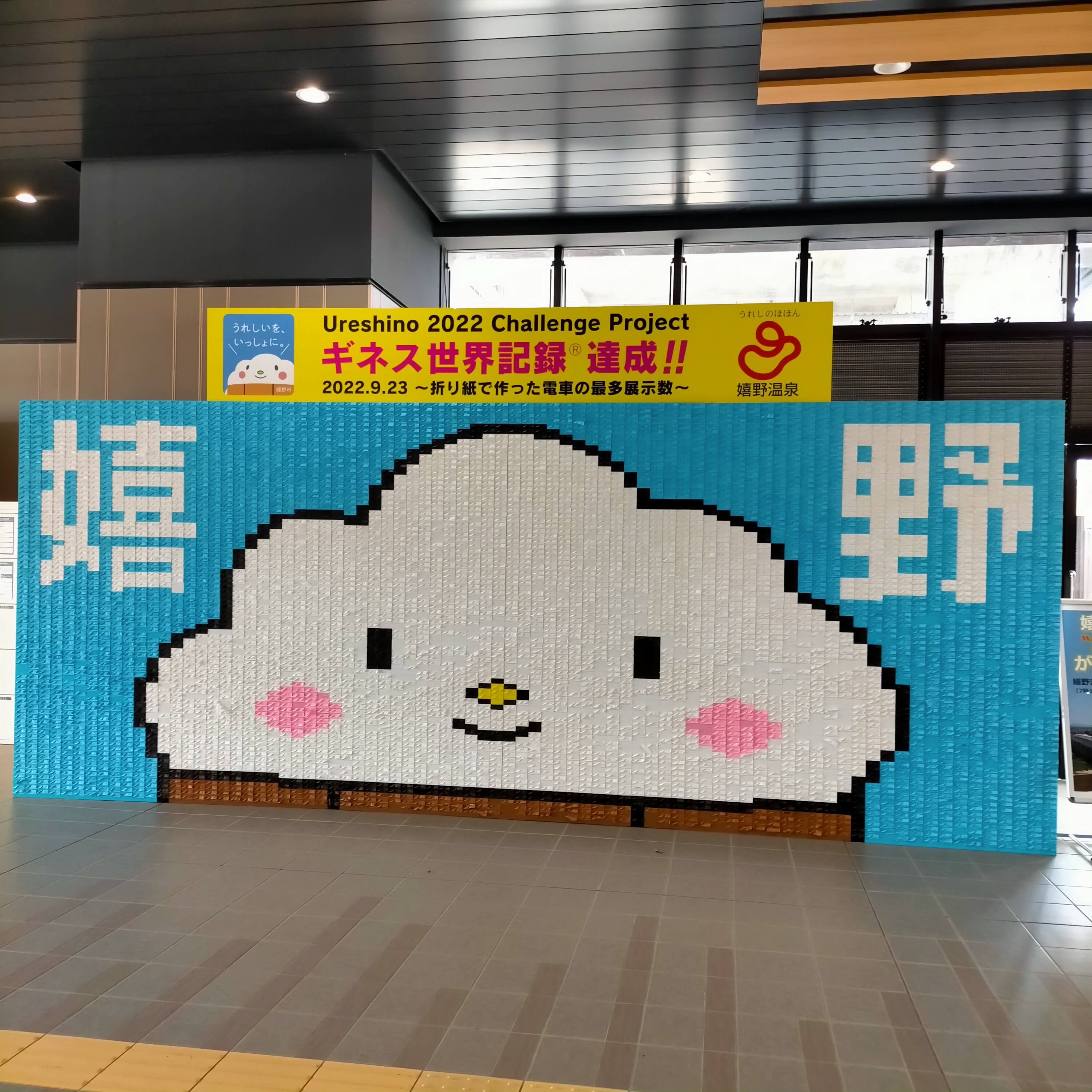嬉野温泉駅にあった折り紙のパネル。