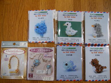 何とか時間が取れましたので名古屋で開催されていた『 ビーズグランプリ2006 』の最終日に行きもう一度 入選されました お友達の作品を拝見して来ました。やっぱり 何度見ても素敵な作品ばかりなので 時間が経つのが早かったです♪そして 先日 時間がなくて 何も買えなかったので今日はしっかり買い物をしてきました。ちばのぶさんの動物キット5点、トーホーのバックチャームキット1点トーホーモチーフアクセサリーキット1点と写真にはありませんが売り切れの為 取り寄せてもらうことになったホビックスさんのキットを入れて 計8点を購入しました。時間を見つけて 少しづつ作って行きたいと思います。■『ビーズグランプリ2006』の今後の開催スケジュールです(日程と開催場所)2006年10月26日(木)~11月 1日(水) さっぽろ東急百貨店予定2007年 2月28日(水)~ 3月 5日(月) 横浜高島屋で開催予定2007年 5月22日(火)~ 5月28日(月) 仙台三越で開催予定*福岡岩田屋での開催予定は今の所 未定です『ビーズグランプリ2006』がお近くで開催されましたら 素敵な作品が沢山ありますので 是非 見に行って下さいね♪