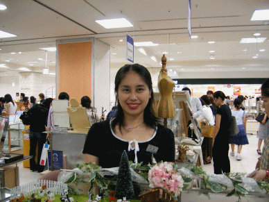 皆さんの作品をたっぷり堪能した後会場の外で 行われている販売コーナーを見ていたら私の大好きな動物モチーフが販売されていたのを見つけましたので お邪魔しましたらなんと あの ビーズ作家として有名な『 ちば のぶよ 』さんのブースでした。ちばのぶよさんは とってもお綺麗で 優しく上品な素敵な方でした。素敵な作品を拝見させて戴きながら今回の『 ビーズグランプリ2006 』に展示されている 沢山の作品をたった2ヶ月で作られた事や 色々なお話を聞かせて戴きましたよ (^-^)最後に 図々しくも お写真の撮影をお願いしましたら快く 撮影に応じて下さいました。 写真の撮影&掲載 及び サイトへのリンクにつきましてはご本人の許可を戴いております。ちばのぶよさんのHPはコチラです→ビーズランドでは キットが購入できますよ~写真左は 既に出版されている(前に書店で購入)本と写真右は 会場で戴いたカタログです。 今年の12月には ブティック社から著作本を発売される予定があるそうなので素敵な作品を拝見出来る日が楽しみです♪今日は お忙しい中貴重なお時間をさいて戴きまして ありがとうございました。