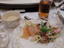 いやいや・・・すでに記憶が遠くなってきてますが・・・まぁ大体こんな感じだったよ的なレポをざっくりと(笑)札幌駅周辺に泊まっていたので、送迎バスを乗るため9時前に札幌駅 北口の乗り場へ。そしてファンミ会場 シャトレーゼ ガトーキングダムサッポロに向かってる途中、昨夜すでに夢のひとときを過ごされたしずくん♪さん、うぇいくみーあっぷさんから 2人はホテルを出る途中だったようで、残念ながら会場での遭遇は出来ず・・・ でも途中ですれ違ったバスが2台くらいあったけど、それに乗ってたのかも(笑)9時半くらいに会場について、しばし休憩。その待ち時間で去年、会場で会えなかったあざみんさんと会う事に成功今年はすんなり会えて嬉しかったゆっくり話したかったんだけど、なんせ私と友達は2次組みなのでチケットがもらえるのが当日なのでなかなか落ち付けずに、短い挨拶となってしまってごめんね2次の受付が10時半からで、グッズが10時から販売・・・。どうみても買うのに時間かかるし厳しいよねぇとシュミレーションしてたら10時前に受付してくれたので、とっても助かりました2次だから仕方ないんだけど・・・チケットを見ると名前と会員番号の部分はシールで対応・・・。ちょっと淋しかったなぁまぁ行けただけでもありがたい事だと納得しましたけど。そして今度はグッズですよ。去年と同様、ブロマイドを選ぶのに時間掛かりましたなぁー私はやっぱり洋ちゃんは全部買いですでもやっぱり今年のNo.1は顕ちゃんでしたねぇなんですの!あのワイルドな感じ!基本、ヒゲがある人って好きではないんだけど・・あれはやられます!!ガチャガチャはですね、1回しかやらないと言っていたのに結局4回やってます(笑)社長・リーダー・顕ちゃん・CUEのロゴ。まぁ引きは結構良かったんでない??国民の友達が洋ちゃんをゲットしてたので、洋ちゃんと顕ちゃんをトレード(笑)さてやっと会場入りですよ~。去年はゆっくり行き過ぎて、会場外にあるホスト達の写真を撮影してる間にお食事も始まってしまってたので、今年は早めに撮影を切り上げて席に座りました。E列の右端の方です。うーん。やっぱり10倍ズームカメラでも遠いですねぇ。練習してる間に、食事がどんどん出されました。今年もリーダー監修の料理★オホーツク産キングサーモンと黒鯛の盛り合わせ 和寒産冬キャベツ(寒玉種)の柚子風味★苫小牧産キノコのマリネ添え 手作りジャンボハム フルーツソース★羊蹄山麓産キタアカリの具沢山ごろごろ温製スープ★北海道の魚介といろいろ野菜のクリームソース和え★知床鶏と完熟トマトソースの軽い煮込み 紫蘇風味★蘭越産ななつぼしで炊いた、根室産紅ズワイ蟹と中札内産枝豆のかにご飯★倶知安産パブリカのババロア 今年最後の余市産洋梨のジュレ寄せ★七飯町ブルーベリーをのせた昔風ベイクドチーズケーキ 木苺ソース添え★プレミアムコーヒーこれを30分程で一気に食べるのは、結構忙しいです。でもね、札幌でのファンミは過去2回来てますが年々美味しくなっていく気がします。今年は特に美味しかったなぁーパイがねぇー、北海道の形してて可愛かったなー。中にある野菜も全部道産物♪リーダーのこだわりが感じられます(*^_^*)肝心のファンミの内容については・・・・また後日(笑)合コンから帰ってきて、真っ先にレポ書いてるってどうよ・・・。